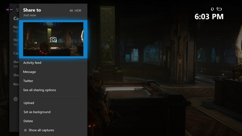 A guia renomeada “Guia de captura e compartilhamento” visa melhorar a usabilidade, elevando suas três opções de captura, “Grave o que aconteceu”, “Comece a gravar” e “Capturar captura de tela” na parte superior da tela, além de permitir que você rapidamente revisite sua última captura. Quando você estiver pronto para compartilhar, o seguinte menu “Compartilhar para” também foi atualizado para se concentrar mais no que você deseja fazer com o seu conteúdo – compartilhe-o rápida e facilmente com seus amigos, o mundo via Twitter ou seu Feed de atividades do Xbox ou salve-o em sua coleção para proteção.